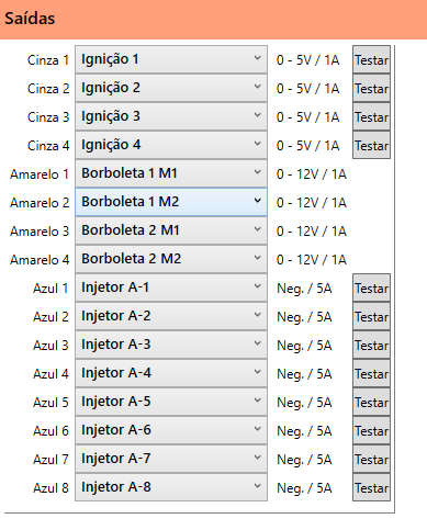 Obs. Para ativação dessa opção, é necessário configurar as saídas e entradas da borboleta eletrônica.