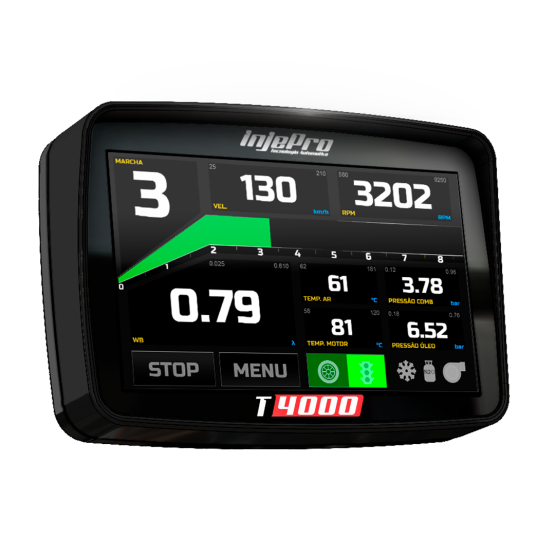 A T4000 é um módulo que vem para expandir e completar a linha T, oferecendo a qualidade e a performance que você já conhece. O seu gabinete é injetado em plástico ABS e sua fixação é através de 4 coxins, o que proporciona um ajuste estável do produto em qualquer lugar do painel do carro. Ela é equipada com um conector automotivo de 34 vias, sendo 7 entradas e 12 saídas configuráveis, o que possibilita utilizar os vários benefícios que o produto oferece, por exemplo: - Condicionador de sonda banda larga integrado; - Injeção sequencial até 4 cilindros e semissequencial até 8 cilindros; - Funções de arrancada; E MUITO MAIS! Além disso, ela conta com um display de 5pol. sensível ao toque, o qual possui um painel de instrumentos autêntico, que foi desenvolvido para tornar a visualização mais prática e com inúmeras opções de configuração. Apresenta dados como: velocidade, RPM, marcha, canais de sensores e atuadores, entre outras informações. Confira todos os detalhes e recursos da T4000 no software e no manual disponível para download em nosso site site www.injepro.com/downloads. Faça parte do time INJEPRO você também! Entre em contato com nossa equipe comercial e saiba mais sobre a T4000.