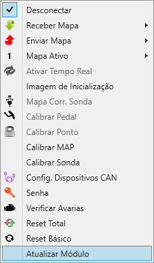 3. Após o software atualizado, agora vamos atualizar o módulo: Abra o software INJEPRO T, conecte o cabo usb, na barra de ferramentas, clique em “Conexão” e depois em “atualizar módulo.