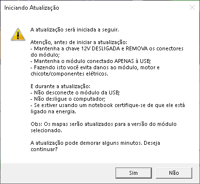 Siga as recomendações de segurança ao atualizar seu módulo e aperte na opção “sim” para continuar a instalação.